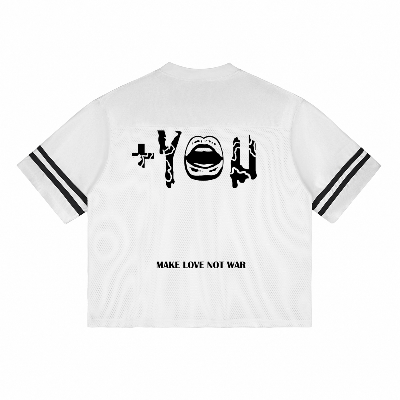 Categories: All Love Not War Collection All | Love Not War Collection | Make Love Not War-Oversized Football Jersey (White) $61.39 Make Love Not War-Oversized Football Jersey (Black) $61.39 Talk To Me Nice-Snow Washed Crop Top $50.17 Love Card-Drop Shoulder Heavyweight T-Shirt $51.53 Performance Athletic Pants $72.42 Love Card-Performance Athletic Pants $72.42